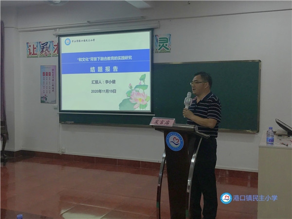 南粵初冬似春顏,三角梅開紅綠展。2020年11月19日下午,中山市港口鎮(zhèn)民主小學(xué)舉行了市級課題《“和”文化背景下融合教育實(shí)踐研究》結(jié)題鑒定會。出席本次會議的驗(yàn)收專家組組長由中山市中小學(xué)德育研究與指導(dǎo)中心副主任、石岐區(qū)文體教育局德育專干潘志堅擔(dān)任,專家組成員有中山市特殊教育指導(dǎo)中心林開儀副主任和楊萍老師、港口鎮(zhèn)教育和體育事務(wù)中心特殊教育專干吳昌育。課題過程管理人港口鎮(zhèn)教育和體育事務(wù)中心德育專干廖志堅和課題組全體成員及各兄弟學(xué)校的老師代表全程參加了此次課題結(jié)題鑒定會。
