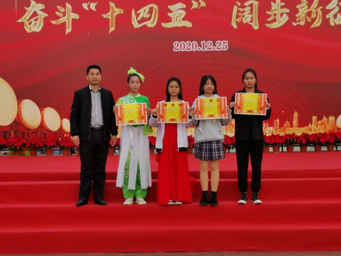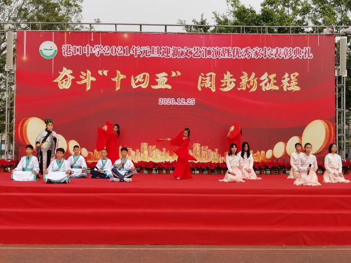 為充分展示港口中學(xué)的素質(zhì)教育和文化建設(shè)成果,進(jìn)一步推動(dòng)學(xué)校體藝活動(dòng)的開展,豐富師生們的文化精神生活,2020年12月25日,港口中學(xué)舉辦了“奮斗十四五,闊步新征程”為主題的元旦迎新文藝匯演活動(dòng)暨優(yōu)秀家長(zhǎng)表彰典禮。參加活動(dòng)的有港口鎮(zhèn)教育和體育事務(wù)中心德育專干廖志堅(jiān)、學(xué)校全體師生及家長(zhǎng)代表。為了讓更多家長(zhǎng)能觀看表演,本次匯演全程通過網(wǎng)絡(luò)現(xiàn)場(chǎng)直播。