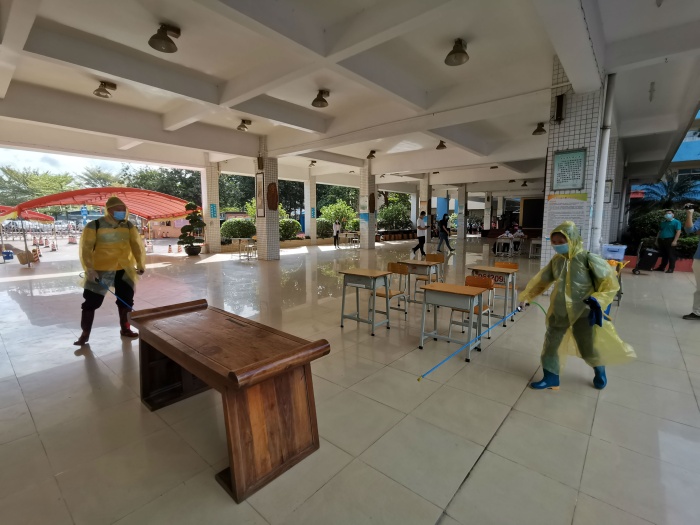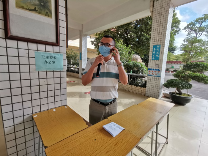 演練后,德育處副主任張建榮對全校師生進行疫情防控指導培訓,特別強調(diào)做好校門入口關,宿舍把控關,嚴防感染性疾病進學校進班級,做好衛(wèi)生清潔保潔與日常消毒,特別是勤洗手。注意課室打開門窗,時刻保持空氣新鮮流通,及時傾倒課室垃圾,認真做好早、中、晚三次體溫檢測和登記,如有異常,立即向校醫(yī)室報告。