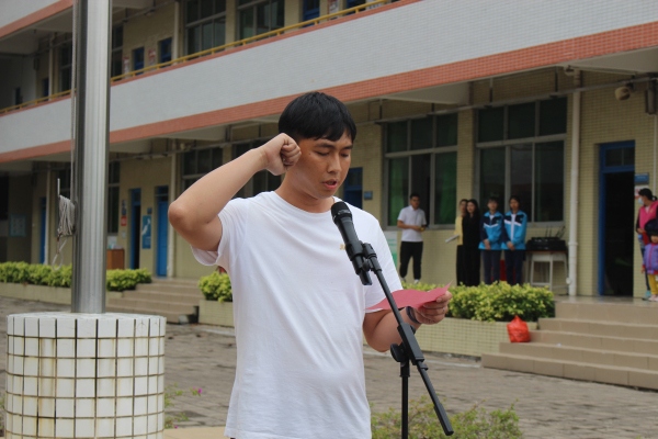 接著運動員代表初三1班陳煜同學(xué)代表全體參賽選手、周嘉杰老師代表全體裁判員莊嚴(yán)宣誓,莊嚴(yán)有力的誓言讓全體運動員和裁判員心情澎湃。最后,廖建紅副校長宣布大南中學(xué)2020年田徑運動會開幕。