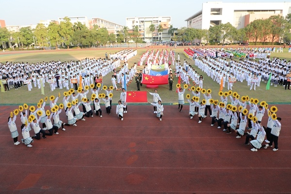 音樂開始,先導(dǎo)隊依次入場,彩旗隊護送著學(xué)校校旗,校運會會旗,鮮花隊手捧鮮花,鼓號隊整齊的鼓點,奏響激昂的旋律;整齊的步伐,踏出青春的節(jié)拍,吸引了所有觀眾的視線。訓(xùn)練有素的先導(dǎo)隊給整場儀式拉開帷幕。