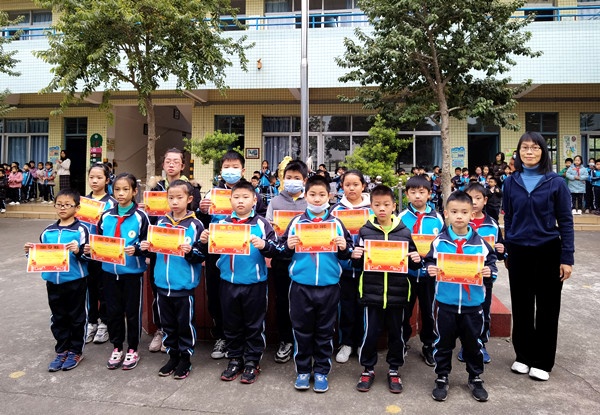 比賽結(jié)束后,數(shù)學(xué)科組的老師們開(kāi)始緊鑼密鼓地批閱試卷。經(jīng)過(guò)緊張、激烈的角逐,一批“計(jì)算小能手”脫穎而出。1月4日清晨,學(xué)校利用升旗儀式的時(shí)間對(duì)劉偉欽、梁恩賜、廖冰清等14位獲獎(jiǎng)同學(xué)進(jìn)行頒獎(jiǎng)。瞧,同學(xué)們拿著獎(jiǎng)狀露出了喜悅的笑容。