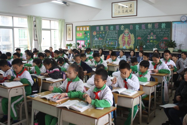 校園開(kāi)放日的重要環(huán)節(jié)就是課堂展示。家長(zhǎng)們走進(jìn)教室,坐到了孩子們事先早已準(zhǔn)備好的膠凳上,和孩子們一起聽(tīng)課。課堂上,老師們采用多種有效的教學(xué)手法,借助多媒體手段,使學(xué)生在輕松愉悅的氛圍中掌握知識(shí)。家長(zhǎng)們認(rèn)真聆聽(tīng)老師們聲情并茂的課堂教學(xué),幸福地看著孩子出色的表現(xiàn),時(shí)不時(shí)掏出手機(jī)記錄精彩的瞬間。有的甚至還一邊聽(tīng)一邊做筆記,好像又回到了美好的學(xué)生時(shí)代。