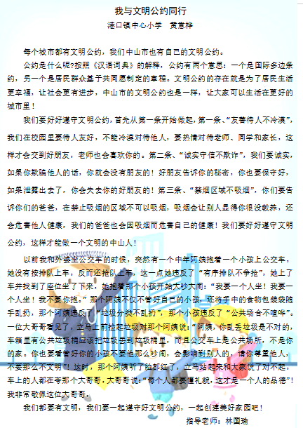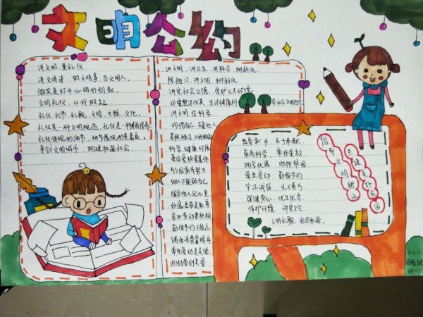 此次活動(dòng)形式主要是制作文明公約手抄報(bào)和寫一篇關(guān)于文明公約的作文。