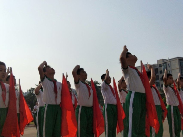 隨著大隊(duì)輔導(dǎo)員莊嚴(yán)地宣布:“升旗儀式,現(xiàn)在開始,全體肅立!”鼓號(hào)隊(duì)馬上鼓樂齊鳴,出旗手莊嚴(yán)地?fù)粗t話旗,踏著正步走向升旗臺(tái)把國(guó)旗交給升旗手,隨著洪亮的國(guó)歌響起:“起來!不愿做奴隸的人民……”,鮮艷的五星紅旗冉冉上升。升旗完畢,由港口鎮(zhèn)中心小學(xué)書支部書記章小蘭同志為活動(dòng)致辭,她站在國(guó)旗下聲情并茂地詮釋著小學(xué)生愛國(guó)的各項(xiàng)表現(xiàn),鼓勵(lì)全體學(xué)生從身邊的小事做起,認(rèn)真學(xué)習(xí),做好每一件事就是熱愛祖國(guó)的最好表現(xiàn)。