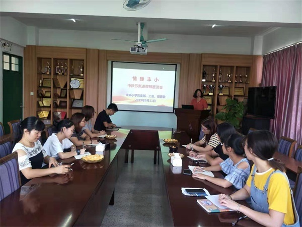 9月11日上午,蘇少麗校長則為新教師開展了中秋座談會。在座談會上,蘇校長充分肯定了新老師開學至今的工作,也讓新老師暢所欲言,表達自己在工作上遇到的問題,同時耐心地給予解說和提供幫助。最后蘇校長還暖心為新教師送上節(jié)日的祝福。當天下午,大豐小學還開展了以“愛國愛家,共話中秋,弘揚傳統(tǒng)”為主題的慶中秋主題班隊親子活動。教師和家長們認真布置教室,師生共話中秋,談中秋的來歷與傳說,聊中秋的習俗,介紹嫦娥奔月的故事。學生感受著經(jīng)典文化的博大精深,激發(fā)了自身的愛國情懷。活動中學生們還品嘗著自己帶來的中秋食品,在品嘗中加深了對傳統(tǒng)節(jié)日文化的了解。