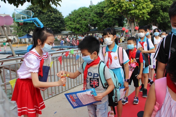 經(jīng)過(guò)七彩氣球拱門,孩子們還收到甜蜜棒棒糖,開(kāi)啟一天的快樂(lè)。教室里,同學(xué)們?cè)诶蠋煹膸ьI(lǐng)下,吹氣球,掛彩旗,齊動(dòng)手,把教室布置得煥然一新!