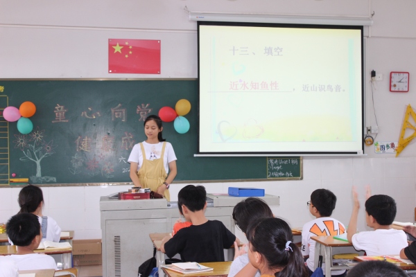 接著進(jìn)行的是“知識(shí)問(wèn)答”活動(dòng)。各班的同學(xué)都積極踴躍參與,搶著回答屏幕展示的問(wèn)題。每一間課室歡聲笑語(yǔ),禮品、零食堆滿課桌,一張張笑臉、一個(gè)個(gè)小游戲,讓校園變成了歡樂(lè)的海洋。