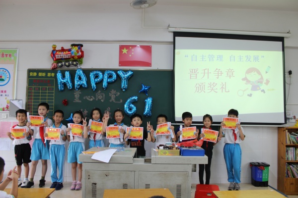 下午,首先進(jìn)行的是“自主管理 自主發(fā)展”晉升爭(zhēng)章頒獎(jiǎng)禮。各班班主任為獲獎(jiǎng)的同學(xué)進(jìn)行頒獎(jiǎng)。講臺(tái)上領(lǐng)獎(jiǎng)的同學(xué)露出了自豪的笑容,臺(tái)下的同學(xué)也在暗暗地下定決心——我下次也要努力爭(zhēng)章!