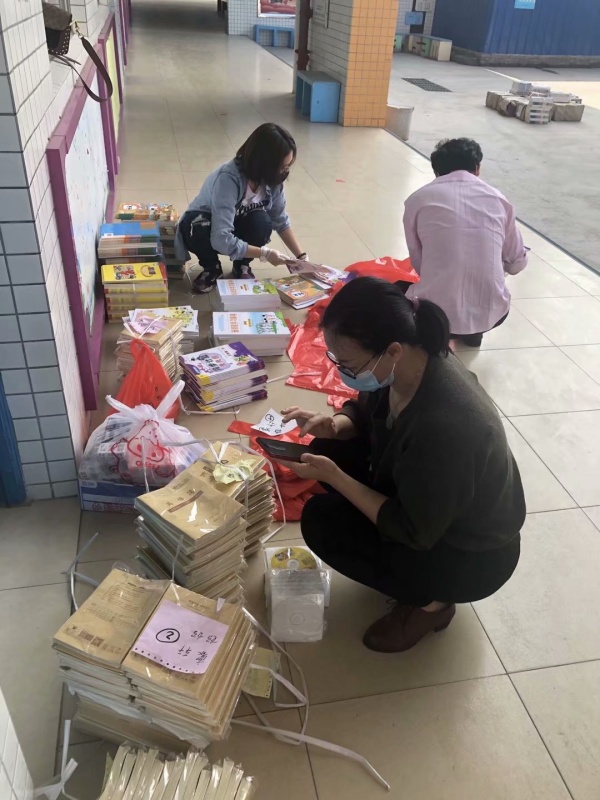 隨即,一袋袋承載著愛的新書在第一時間里被各班的家長志愿者分區(qū)域送到指定地址。老師們細致提醒家長志愿者,務必戴好口罩,做好個人防護,與領書的家長或學生保持距離。派書過程中,送完一家還來不及聽家長說一句“謝謝”、“辛苦了”,家長志愿者們又急忙趕往下一家,只為能把書本送到每位同學手中。他們這種甘于奉獻、不辭辛勞的奉獻精神令人動容,更令人敬佩!