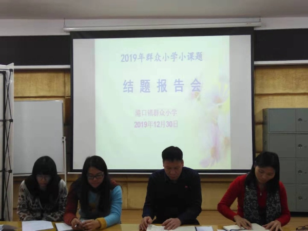2019年12月30日,港口鎮(zhèn)群眾小學(xué)舉行了小課題結(jié)題報(bào)告會(huì)。此次會(huì)議與會(huì)成員有學(xué)校梁銓華校長(zhǎng)、科研管理組成員及各課題組成員,由學(xué)校蘇小蓉副校長(zhǎng)主持。