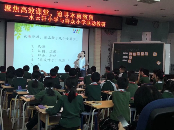 為進(jìn)一步促進(jìn)課程改革的深入發(fā)展,提高學(xué)校語文教師教育教學(xué)水平,促進(jìn)教師的專業(yè)化發(fā)展,11月7日下午,港口鎮(zhèn)群眾小學(xué)與東區(qū)水云軒小學(xué)進(jìn)行了主題為“聚焦高效課堂,追尋本真教育”的教學(xué)聯(lián)誼活動。群眾小學(xué)語文科組共10位教師前往水云軒小學(xué)學(xué)習(xí)。