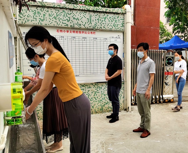 隨著復(fù)學(xué)腳步的臨近,為進(jìn)一步做好疫情防控期間的復(fù)學(xué)安全工作,加強(qiáng)學(xué)校各部門的協(xié)調(diào)和配合,全面提升教職工防控疫情的應(yīng)急能力,切實(shí)保障復(fù)課后全體師生的生命健康安全。5月13日上午,石特小學(xué)開展了第二次師生返校模擬演練,學(xué)校全體教職工和校醫(yī)參與了此次演練。