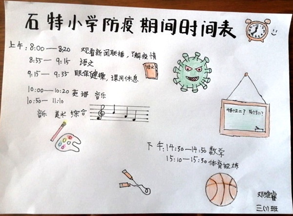 3月2日當天,同學們認真地端坐在書桌前,認真地觀看微課視頻,積極思考,勤做筆記。在互動環(huán)節(jié),老師們?yōu)橥瑢W們答疑解惑,批改作業(yè),做精準及時的指導,大大提升了他們的學習效率。除了學科知識的教學,學校還十分重視健康教育。老師們不僅積極普及防“疫”知識,而且不斷鼓勵同學們進行體育鍛煉和參與家務勞動,用實際行動抗擊疫情。學校更是開設了豐富多彩的拓展課程,包括音樂鑒賞、創(chuàng)意美術(shù)等;同學們可以根據(jù)自己的興趣愛好自行選擇。為了讓自己的學習更有效,不少同學還精心制定了自己的在線學習計劃,讓“居家學習”更加充實、有意義。