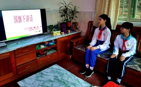 病毒無情,教育有愛。別樣的升旗儀式,一樣的愛國情懷。屏幕里,鮮艷的五星紅旗冉冉升起;屏幕外,同學們個個精神飽滿,身姿挺拔,唱著國歌,向國旗行隊禮和注目禮!同學們從鮮艷的五星紅旗中看到了中國力量,從激昂的國歌中聽到了民族強音。