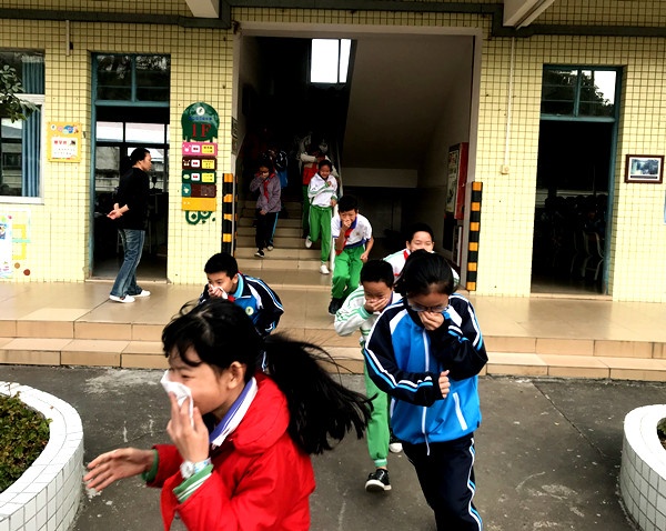 演練前行政領(lǐng)導(dǎo)和全體教師,結(jié)合實際情況認真細致的制訂了演練活動方案,明確職責要求。12月3日上午8點20分,隨著消防警報聲的響起,各班班主任、各樓層指揮人員迅速到達指定地點,沉著冷靜地指揮學生用濕毛巾捂住口、鼻,盡量將身體放低,從安全疏散通道緊急撤離教學樓。全體師生在短短1分40秒,安全、快速、有序地疏散到了學校操場。隨即各班班長清點人數(shù),并及時向梁森明主任匯報。整個過程緊張有序,收到了預(yù)期的效果。