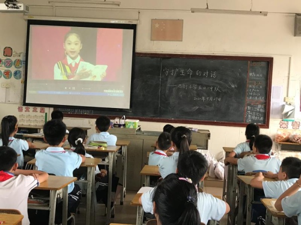 29日下午第二節(jié),全體少先隊員觀看了《守護(hù)生命的對話》廣東省少先隊活動,了解醫(yī)護(hù)人員在防控期間的工作,加強隊員們對生命的重視,隊員們也從中體會到了生命的意義。