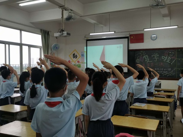 盼望著,盼望著, 5月18日,港口鎮(zhèn)西街小學終于迎來了四、五、六年級師生返校復學的日子,西街小學舉行四五六年級復學升旗儀式暨“開學第一課”活動。