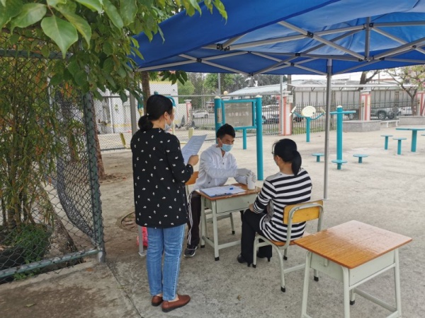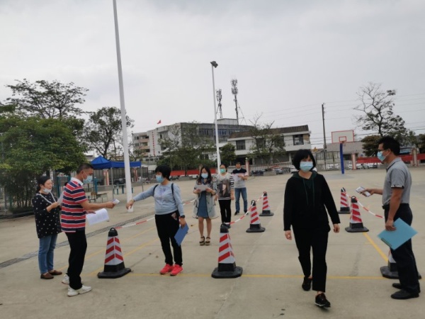 學(xué)校已在校門口和校內(nèi)場(chǎng)室設(shè)置了臨時(shí)隔離室,并配備衛(wèi)生員、隔離管理人員各一名,學(xué)校總務(wù)處用雪糕桶提前在校門口布置好了學(xué)生的通行過道,并畫好間隔線?;顒?dòng)開始,梁偉佳主任為參與活動(dòng)的老師們講解了實(shí)操演練的流程和注意事項(xiàng),并對(duì)常規(guī)要求進(jìn)行了詳細(xì)地說明,本次活動(dòng)重點(diǎn)模擬學(xué)生返校晨檢和上課期間發(fā)現(xiàn)可疑病例后的應(yīng)急處置。