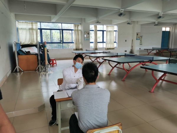 演練場(chǎng)景二,在課室上課期間發(fā)現(xiàn)可疑病例,任課老師要將體溫異常學(xué)生帶到課室外測(cè)量體溫,并將情況上報(bào)給班主任,由班主任帶領(lǐng)該生前往留觀室,聯(lián)系家長(zhǎng)詢問情況。衛(wèi)生員再次用水銀溫度計(jì)給學(xué)生測(cè)量體溫,追問病史進(jìn)行信息登記,向梁麗鴻副校長(zhǎng)上報(bào)情況。若核查為可疑病例,送至定點(diǎn)醫(yī)院診斷及隔離治療。該班學(xué)生轉(zhuǎn)移至備用教室,由消毒人員對(duì)學(xué)校進(jìn)行消殺工作。