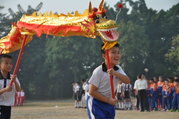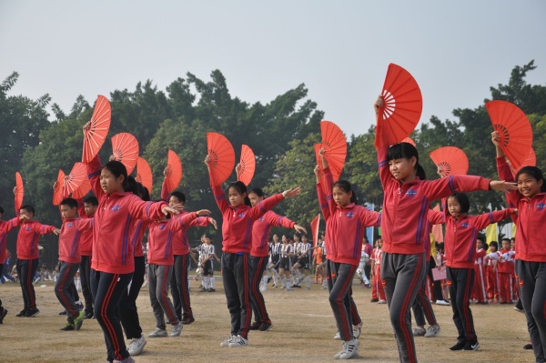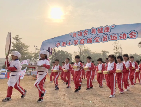 運(yùn)動(dòng)會(huì)開(kāi)幕式在慷慨激昂的《運(yùn)動(dòng)會(huì)進(jìn)行曲》中拉開(kāi)序幕。第一環(huán)節(jié)是各班班級(jí)展示粵文化的入場(chǎng)式表演。同學(xué)們穿著各式各樣的服裝,臉上洋溢著明媚的笑意。所有班級(jí)的表演各有千秋。表演中,有在激情昂揚(yáng)的粵語(yǔ)歌曲下?lián)]舞著雙臂;有帶著動(dòng)物面具,在可愛(ài)的《何家公雞何家猜》音樂(lè)中舞蹈;甚至還有以近期流行粵語(yǔ)音樂(lè)《野狼Disco》為背景來(lái)跳舞。不止這些,我們還看到了精彩的太極扇舞,亦或是抱著茶點(diǎn)蒸籠的可愛(ài)孩子……每一個(gè)班級(jí)的孩子們都發(fā)揮出最好的自我,將優(yōu)秀的粵文化完美地展示給大家。前期的辛勤苦練,在這一天——這個(gè)重要的日子里,終于得到了回報(bào)。在這一天,同學(xué)們臉上喜悅的笑容,主席臺(tái)上的陣陣掌聲與歡呼聲更加的熠熠生輝。