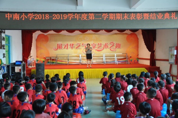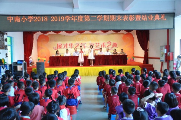 2019年7月5日上午,中南小學舉行了2018-2019學年度第二學期期末表彰暨結業(yè)典禮,全體師生參加了會議。