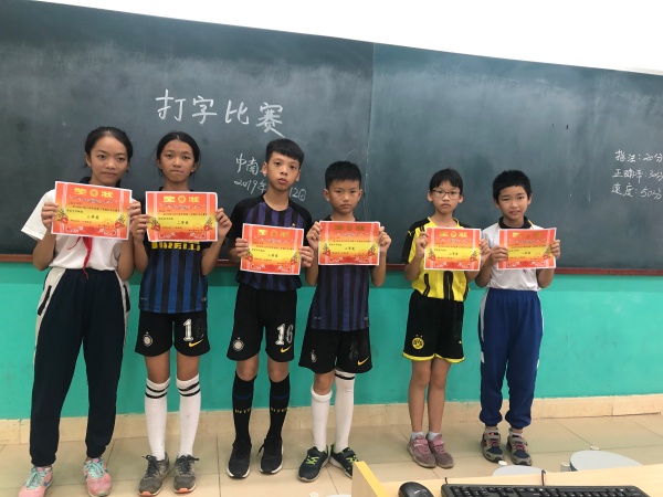 最后監(jiān)考老師根據(jù)學(xué)生打字的速度、正確率和指法,評出了梁巧意、林子釗等12名成績優(yōu)異的學(xué)生,并頒發(fā)了獎狀,給予鼓勵。