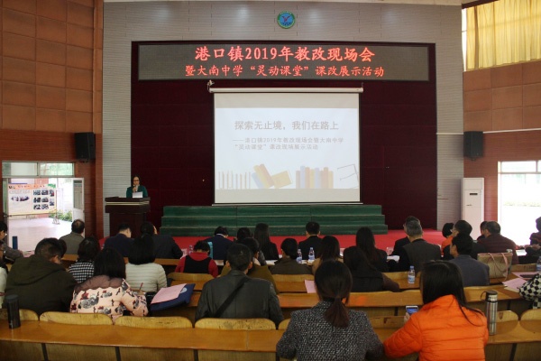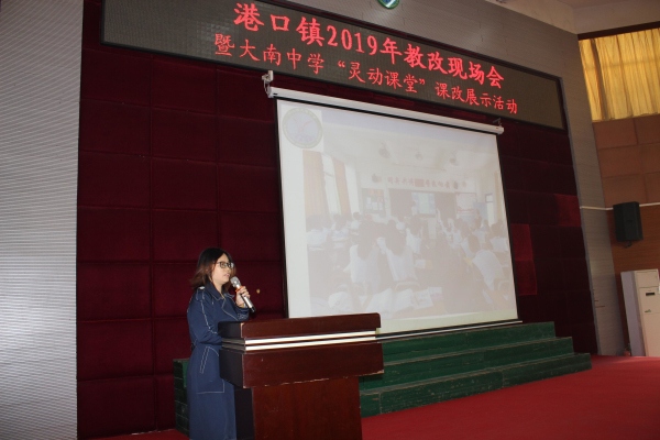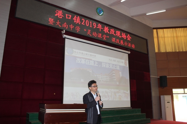 為展示港口鎮(zhèn)教學(xué)改革的成果,2019年12月11日上午,港口鎮(zhèn)教學(xué)改革現(xiàn)場(chǎng)會(huì)暨大南中學(xué)“靈動(dòng)課堂”課改展示活動(dòng)在大南中學(xué)舉行。參加本次活動(dòng)的有中山市教研室邱惠芬、張?zhí)﹦?、郭躍輝、夏建軍、辛鍵五位教研員,港口鎮(zhèn)黨委黃建鋒委員、港口鎮(zhèn)文體教育局陳麗華局長(zhǎng)、港口鎮(zhèn)教育事務(wù)指導(dǎo)中心劉憲軍主任、港口鎮(zhèn)教育事務(wù)指導(dǎo)中心蘇少偉、蘇彩南教研專干,以及鎮(zhèn)內(nèi)外學(xué)校領(lǐng)導(dǎo)、老師及部分家委近120人?;顒?dòng)由港口鎮(zhèn)教育事務(wù)指導(dǎo)中心劉憲軍主任主持。