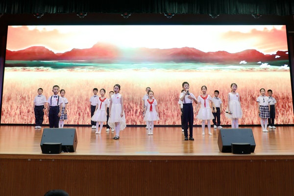 “在世界的國,在天地的家……”活動在一首耳熟能詳?shù)母枨秶摇防_了序幕。參加朗誦的同學(xué)激情澎湃,抑揚頓挫,用詩歌表達(dá)對先烈的懷念,對祖國母親的歌頌與祝福,現(xiàn)場氣氛熱烈,掌聲不斷。同學(xué)們有贊美祖國或抒寫鐵志;有勿忘國恥或圓夢中華,他們時而慷慨激昂的贊美把臺下觀眾帶入了詩的國土;他們時而低緩的傾訴,似乎又為我們展開了以往的崢嶸歲月?!吨袊摹贰ⅰ吨腥A少年》、《我的祖國》、《我驕傲我是中國人》、《英雄碑頌》等一首首豪情滿懷的愛國詩篇被選手們演繹得激情四溢?!白鎳边@個動人的字眼一再出現(xiàn),激動的心情感染著在座的每一位師生!一張張震撼人心的背景圖片,一首首滿懷激情的詩歌飽含著對祖國母親的真摯祝福,同學(xué)們用誠摯真情謳歌祖國的偉大成就,激發(fā)著在場每一位作為中國人的自豪感!最后戴必俊副校長總結(jié)發(fā)言,他為參賽同學(xué)的精彩朗誦點贊,并激勵全體少先隊員要常懷感恩之心,珍惜來之不易的幸福生活,努力學(xué)習(xí),增長才干,爭做新時代好少年!最后經(jīng)過激烈角逐,三(2)班、三(5)班、四(2)班和四(4)班獲得一等獎。