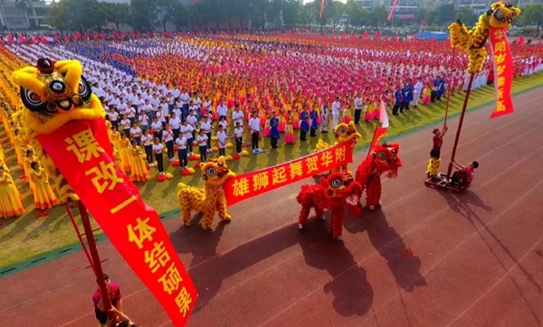 莊嚴(yán)的升旗儀式后,總校長(zhǎng)劉詩(shī)雄宣布:華南師范大學(xué)中山附屬中學(xué)第十六屆體育藝術(shù)節(jié)開幕!生動(dòng)的龍獅表演精彩上演,正式拉開本屆體藝節(jié)序幕。