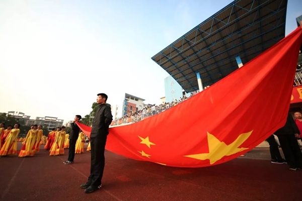 緊接著,校長(zhǎng)助理連進(jìn)城代表學(xué)校致辭:正是身處這樣欣欣向榮之中國(guó),正是恰逢這般生機(jī)勃勃之時(shí)代,我們才能在安寧、祥和中共謀發(fā)展、共享盛世;才能在這繁榮、富強(qiáng)的國(guó)度相互成全、彼此溫暖!深情回望來時(shí)路,我們無比熱愛我們的祖國(guó)!靜觀天下未來勢(shì),我們由衷禮贊奮進(jìn)的新時(shí)代!愛國(guó)就要愛學(xué)習(xí),新時(shí)代是學(xué)習(xí)型的時(shí)代!愛國(guó)就要愛運(yùn)動(dòng),新時(shí)代是健康第一的時(shí)代!愛國(guó)就要愛勞動(dòng),新時(shí)代是特別崇尚勞動(dòng)的時(shí)代!人世間的一切藝術(shù)作品、一切成就都源于勞動(dòng)、源于創(chuàng)造。7個(gè)年級(jí)(部)入場(chǎng)式上場(chǎng)面宏大、氣勢(shì)磅礴的表演正是各年級(jí)(部)研究性學(xué)習(xí)成果的藝術(shù)創(chuàng)造與再現(xiàn)。
