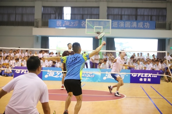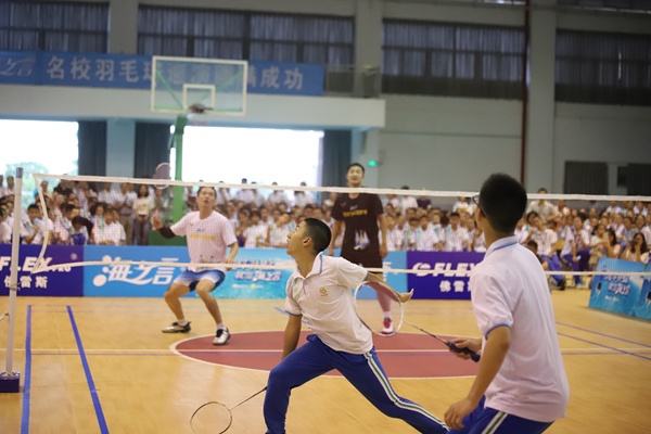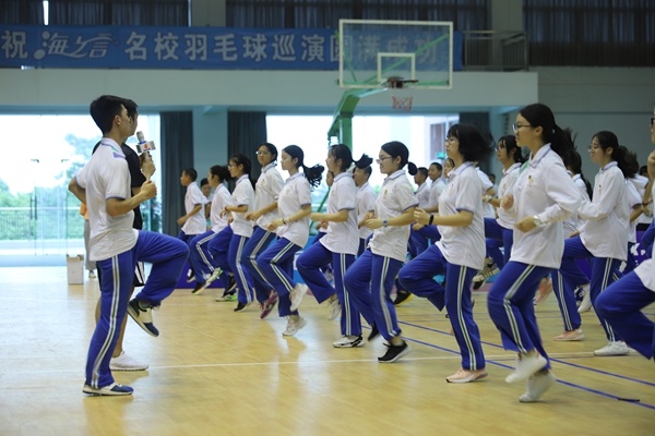 隨后,活動(dòng)的主辦單位代表亞太羽毛球?qū)W院林海濤先生講話中指出,“快樂(lè)羽毛球 名校在行動(dòng)”巡演活動(dòng),旨在邀請(qǐng)世界級(jí)羽毛球冠軍展示羽毛球運(yùn)動(dòng)的魅力精髓,激發(fā)、鼓勵(lì)學(xué)生對(duì)運(yùn)動(dòng)、對(duì)羽毛球的熱愛(ài)和向往。世界冠軍王睜茗也表示,希望通過(guò)本次活動(dòng),能促進(jìn)同學(xué)們更多地接觸、了解羽毛球,強(qiáng)健體魄,健康快樂(lè)成長(zhǎng)。