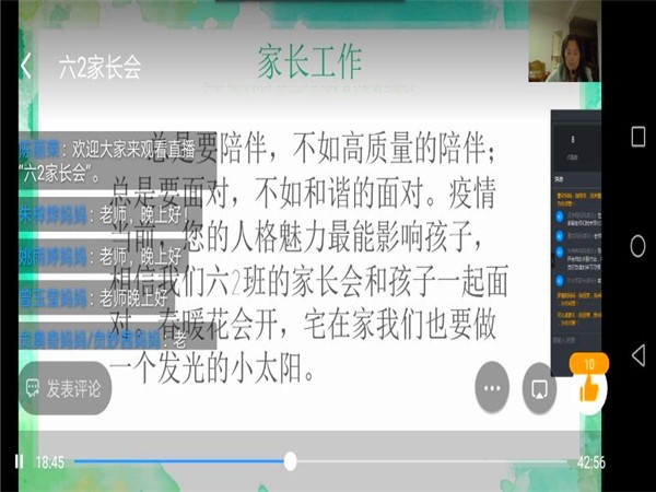 為開展好此次特別的家長會,學校專門進行了會議研究探討,制定了線上家長會的實施方案,班主任們還精心制作了家長會的課件,使家長會更有實效性。家長會上,各年級班主任從網(wǎng)絡課堂的優(yōu)點、學生的學習狀態(tài)及目前存在的問題、需要家長協(xié)助的事宜等方面反饋了網(wǎng)絡開學以來的情況。家長們在屏幕前認真聆聽,積極互動,雙方交流順暢,達到了顯著的效果。