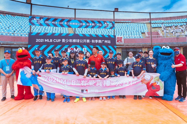 日前,2021 MLB CUP青少年棒球公開賽·秋季賽廣州站在廣東黃村體育訓練中心棒球場舉行,球場上有飛奔的少年,有練習棒球的啟慧兒童,還有芝麻街毛茸茸的好朋友甜餅怪、艾摩,他們一起享受棒球帶來的快樂。