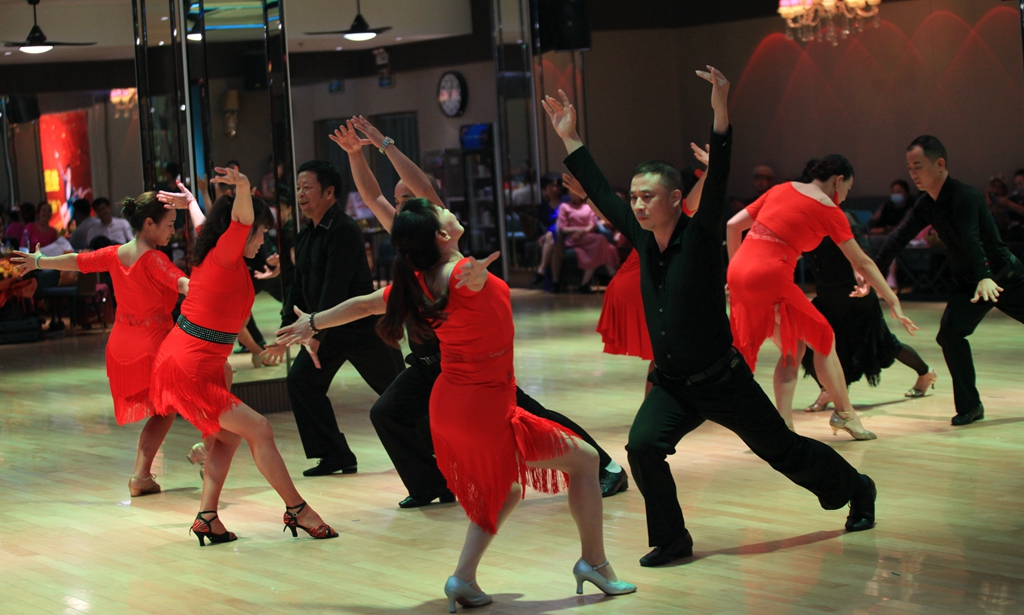 探戈、倫巴、華爾茲……當天,廣州市金峰舞蹈俱樂部專場舞會火熱舉行,舞會匯集了老中青三代人,大家因為共同的愛好相聚在一起,在做好疫情防控的前提下,輪番上陣,表演自己拿手的舞蹈,表達熱愛生活、崇尚運動的喜悅心情。