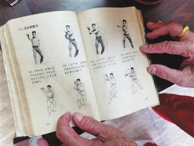 蕭永定精神矍鑠,聲如洪鐘,身形矯健,拳拳生風,但他其實已年近九旬。他是中山非遺傳承人中年紀最大的一位。蕭永定說,他八九歲的時候就在村中的“超武國術社”和“中方國術社”跟隨前輩學習劉家拳等南拳武術。