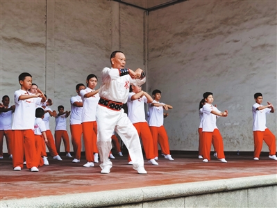 88歲的蕭永定帶領徒弟們操練劉家拳。
