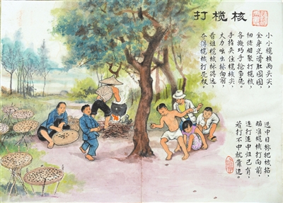 鄧振鈴作品《兒童游戲》系列之《打欖核》。