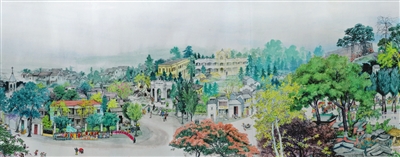鄧振鈴作品《故園憶舊圖》局部,中山縣立中學(xué)原址,現(xiàn)在的中山開放大學(xué)。