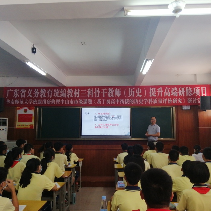 9月13日,廣東省義務(wù)教育統(tǒng)編教材三科骨干教師(歷史)提升高端研修項目——華南師范大學班跟崗研修暨中山市市級課題《基于初高中銜接的歷史學科質(zhì)量評價研究》研討活動在中山市阜沙中學進行,華南師范大學班跟崗學員、市級歷史課題組成員共30多位老師參與本次研討會。