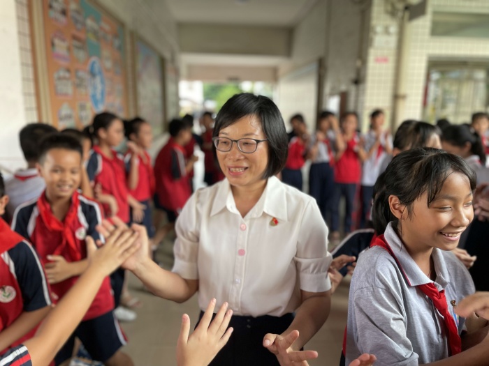 活動(dòng)中,隨著悠揚(yáng)的旋律響起,在該校胡映芬校長(zhǎng)的帶領(lǐng)下全校教師與學(xué)生互相致意,互相擊掌慶祝。一聲聲真誠(chéng)的問(wèn)候,一個(gè)個(gè)燦爛的笑臉,共同為教師們送上了美好的祝福,一句句“老師,您辛苦了”,讓老師們感動(dòng)不已;一聲聲感恩的“真情訴說(shuō)”讓老師甜透心田,表達(dá)著學(xué)生對(duì)老師們最崇高的敬意。老師們聽(tīng)到學(xué)生一聲聲的祝福,臉上流露出欣慰的笑容。在一陣陣掌聲中,這場(chǎng)感念師恩的活動(dòng)給師生們留下了難忘的回憶。