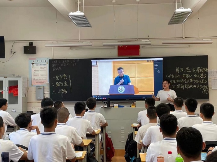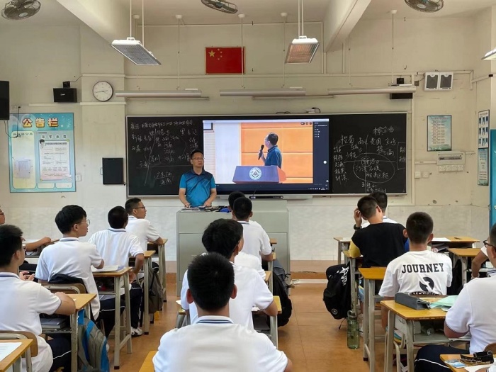 他以中山籍奧運(yùn)健兒蘇炳添在東京奧運(yùn)賽場上頑強(qiáng)拼搏為國爭光談起,激發(fā)青年學(xué)生對民族的自豪感和榮譽(yù)感。繼而他拋磚引玉地提出問題:“同學(xué)們對責(zé)任與擔(dān)當(dāng)?shù)目捶ㄊ鞘裁??”“作為新時(shí)代的青年,你們的時(shí)代擔(dān)當(dāng)是什么?”事例催人奮進(jìn),問題發(fā)人深省。
