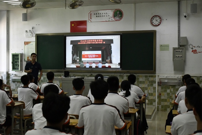 2021年9月10日,中山市火炬科學(xué)技術(shù)學(xué)校2021-2022學(xué)年度第一學(xué)期開學(xué)典禮暨開學(xué)第一課在南朗校區(qū)紫荊堂舉行,全校師生通過(guò)教室多媒體直播系統(tǒng)進(jìn)行收看。中山市火炬科學(xué)技術(shù)學(xué)校校長(zhǎng)程少輝,中山市反詐騙中心翠亨新區(qū)分中心劉逸澤警官,南朗街道南苑派出所駐校民警鐘潤(rùn)祥警官,以及南朗街道綜治辦、禁毒辦的工作人員等參加了本次活動(dòng),活動(dòng)儀式由學(xué)校德育處副主任袁建主持。