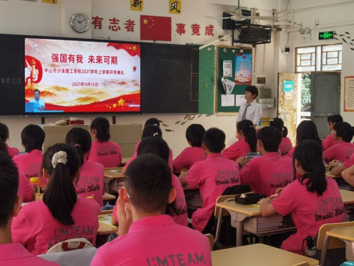 9月10日,中山市沙溪理工學(xué)校舉行線上開學(xué)典禮,全體在校師生近4000人在課室、實訓(xùn)室、綜藝廳等場室通過線上直播的方式參加。