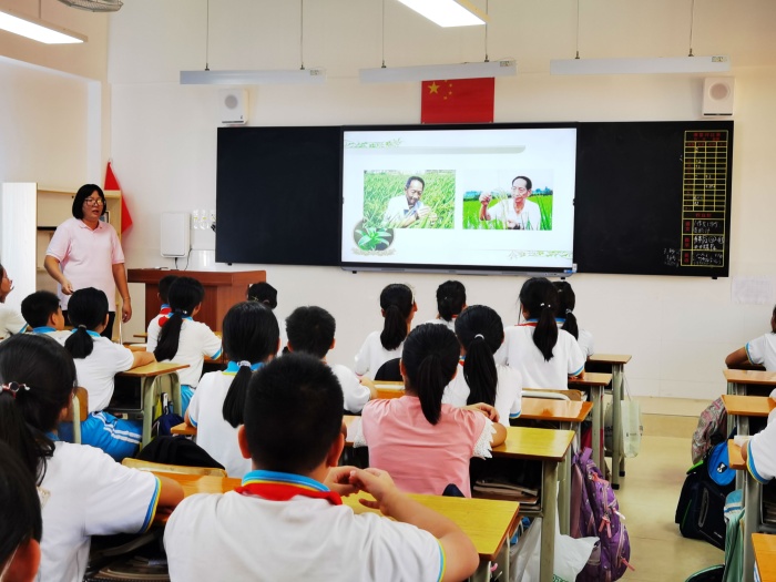 接著,同學(xué)們談一談自己心中的偶像。每個(gè)學(xué)生都積極參與,課堂氣氛活躍。有的孩子說(shuō):“我的偶像是鐘南山爺爺,他在抗疫戰(zhàn)爭(zhēng)中挺身而出,不顧個(gè)人安危救國(guó)家于危難之中?!庇械暮⒆诱f(shuō):“我的偶像是中國(guó)飛人蘇炳添,他創(chuàng)造了歷史,敢于努力拼搏、不斷超越!?!庇械暮⒆诱f(shuō):“我的偶像是‘雜交水稻之父’袁隆平爺爺,他解決了全世界五分之一人口的糧食難題?!?孩子們暢所欲言,紛紛分享自己心目中的偶像:鐵榔頭“郎平”、優(yōu)秀的女科學(xué)家“居里夫人”、鞠躬盡瘁的“諸葛亮”、默默無(wú)聞的清潔工人、盡心盡責(zé)的交警叔叔、堅(jiān)強(qiáng)勇敢的消防員、救死扶傷的醫(yī)生、默默無(wú)聞的老師……