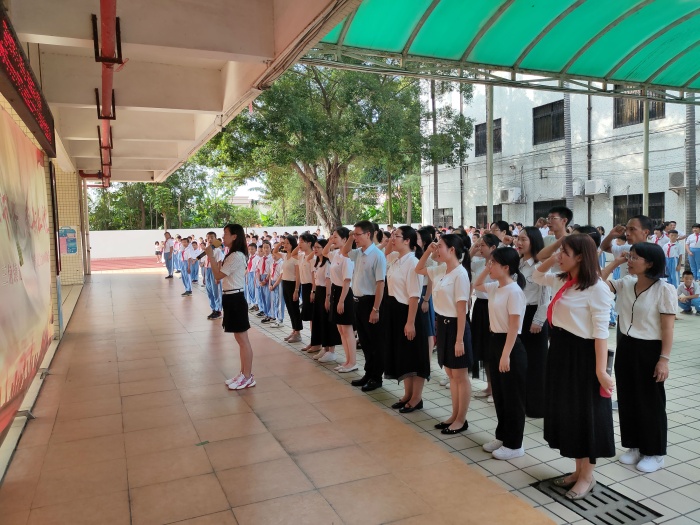 上午八點,全體師生精神抖擻的匯聚于學(xué)校操場,鮮艷的五星紅旗在升旗儀仗隊的護(hù)衛(wèi)下,伴著雄壯的義勇軍進(jìn)行曲,與太陽一同冉冉升起。在莊嚴(yán)的升國旗儀式后,校長莫文杰進(jìn)行了熱情洋溢的致詞,向辛勤耕耘的老師們致以節(jié)日的祝賀和衷心的感謝,勉勵教師們努力成為與時俱進(jìn)的新時代教師,要有熱愛教育的定力和淡泊名利的堅守,做有理想信念、有道德情操、有扎實學(xué)識、有仁愛之心的“四有”好老師。
