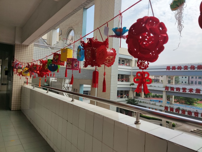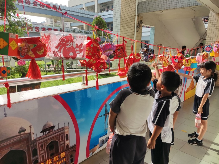 接著,三沙小學(xué)以年級(jí)為單位評(píng)選出近百個(gè)設(shè)計(jì)精巧、色彩繽紛、獨(dú)具匠心的燈籠作品。有的燈籠鮮艷熱忱,寄托濃濃的情思;有的燈籠古風(fēng)溫婉,承載中秋佳節(jié)的祝福;有的燈籠實(shí)用精巧,暗含“變廢為寶”的巧思。它們懸掛在校園之中,學(xué)生們下課后就聚集在燈籠下,興奮地跟小伙伴介紹自己的燈籠,十分歡樂。