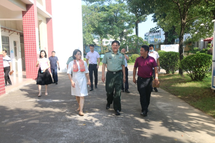 劉燦瑩等市鎮(zhèn)領(lǐng)導(dǎo)一行看望慰問了學(xué)校辛勤耕耘在教育一線的老師們,送上了黨委政府的溫暖和關(guān)懷,向老師們致以節(jié)日的祝福和親切的問候。隨后,在黎碧?hào)|校長等學(xué)校領(lǐng)導(dǎo)的陪同下,劉燦瑩一行巡視了初三教學(xué)樓、禁毒教育室、食品快檢室、交通安全活動(dòng)室等相關(guān)功能場室、教學(xué)樓、辦公室等公共設(shè)施,并詳細(xì)了解了學(xué)校日常工作的相關(guān)情況。在聽取了黎碧?hào)|校長對學(xué)校建設(shè)、師生基本情況、辦學(xué)成績、新學(xué)年辦學(xué)設(shè)想以及開學(xué)防疫措施等有關(guān)概況的匯報(bào)后,政委對近年來橫欄中學(xué)在教育教學(xué)工作中所取得的成績給予充分肯定,并勉勵(lì)學(xué)校再創(chuàng)佳績。劉政委最后還表示,教育是民族振興、社會(huì)進(jìn)步的基石,希望我們?nèi)w教師要堅(jiān)持立德樹人的理念,奮進(jìn)擔(dān)當(dāng),敬業(yè)愛崗,銳意進(jìn)取,同時(shí)也要繼續(xù)加強(qiáng)國防安全教育,為全市教育事業(yè)發(fā)展再創(chuàng)新績。