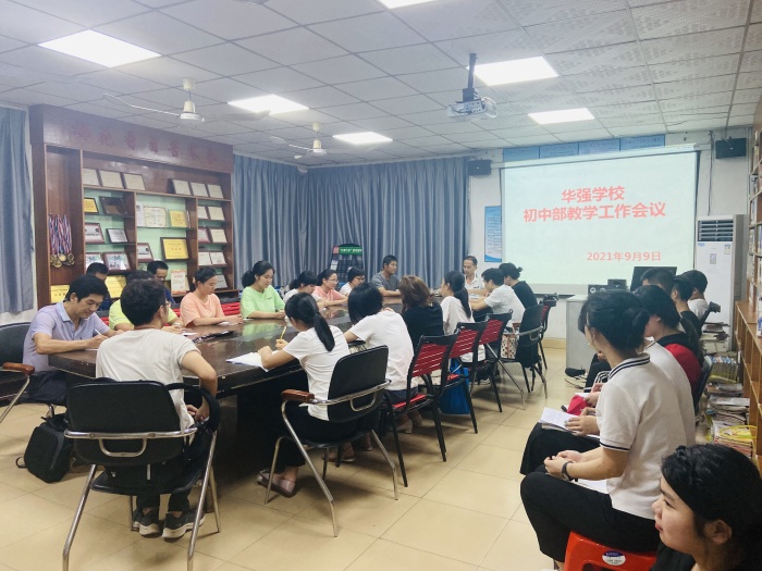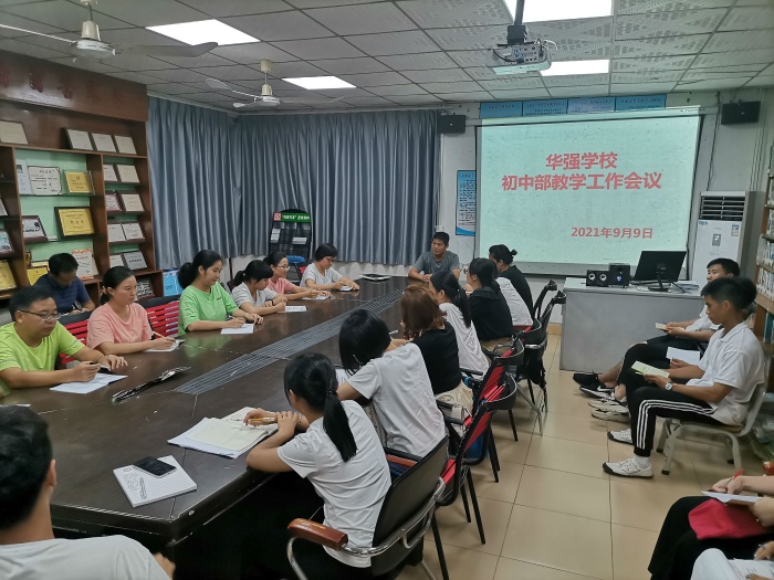 9月9日晚,華強學(xué)校初中部全體教師集中在學(xué)校會議室,召開教學(xué)工作會議。會議由主管初中部教學(xué)工作的周波主任主持。