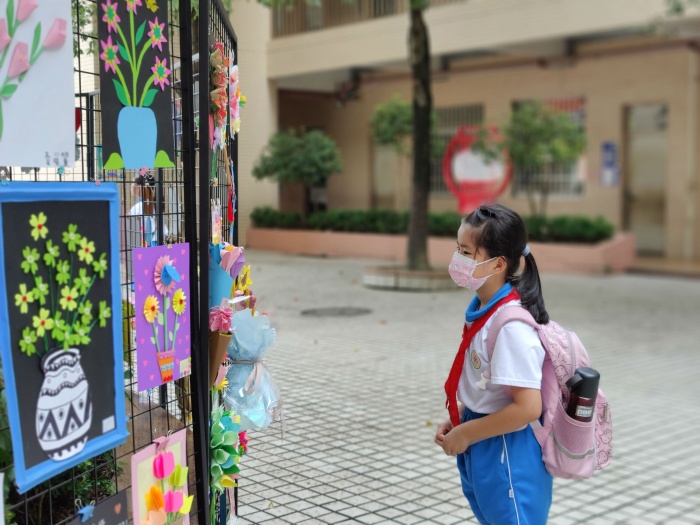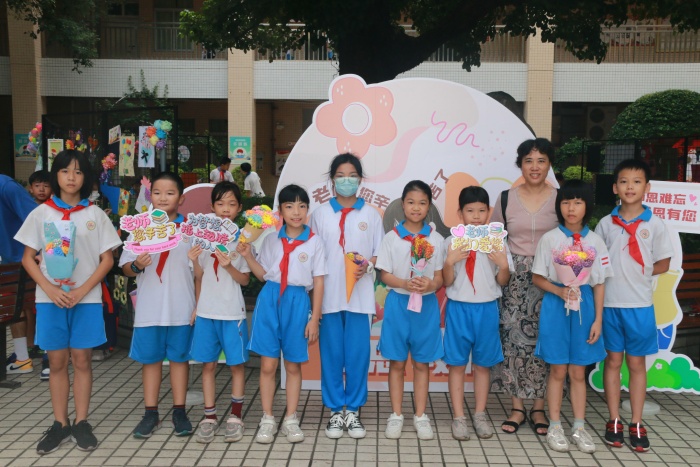 純真燦爛的笑容綻放在師生的臉上,若有若無(wú)的“花香”縈繞在青翠的樹(shù)旁。全校學(xué)生精心制作教師節(jié)手工花,繪畫(huà)的、彩紙的、輕黏土的......每一朵花都寄寓著美好的愿望,每一朵花都散發(fā)著動(dòng)人的韻味,每一朵花都讓教師們陶醉感動(dòng),甜在心頭。